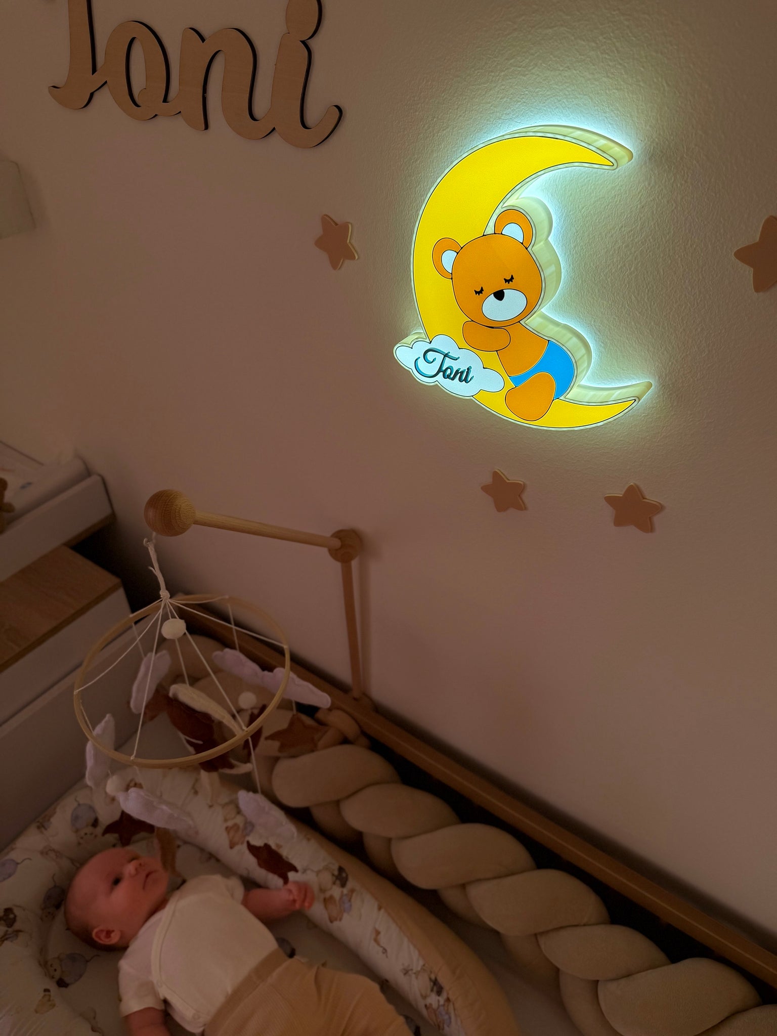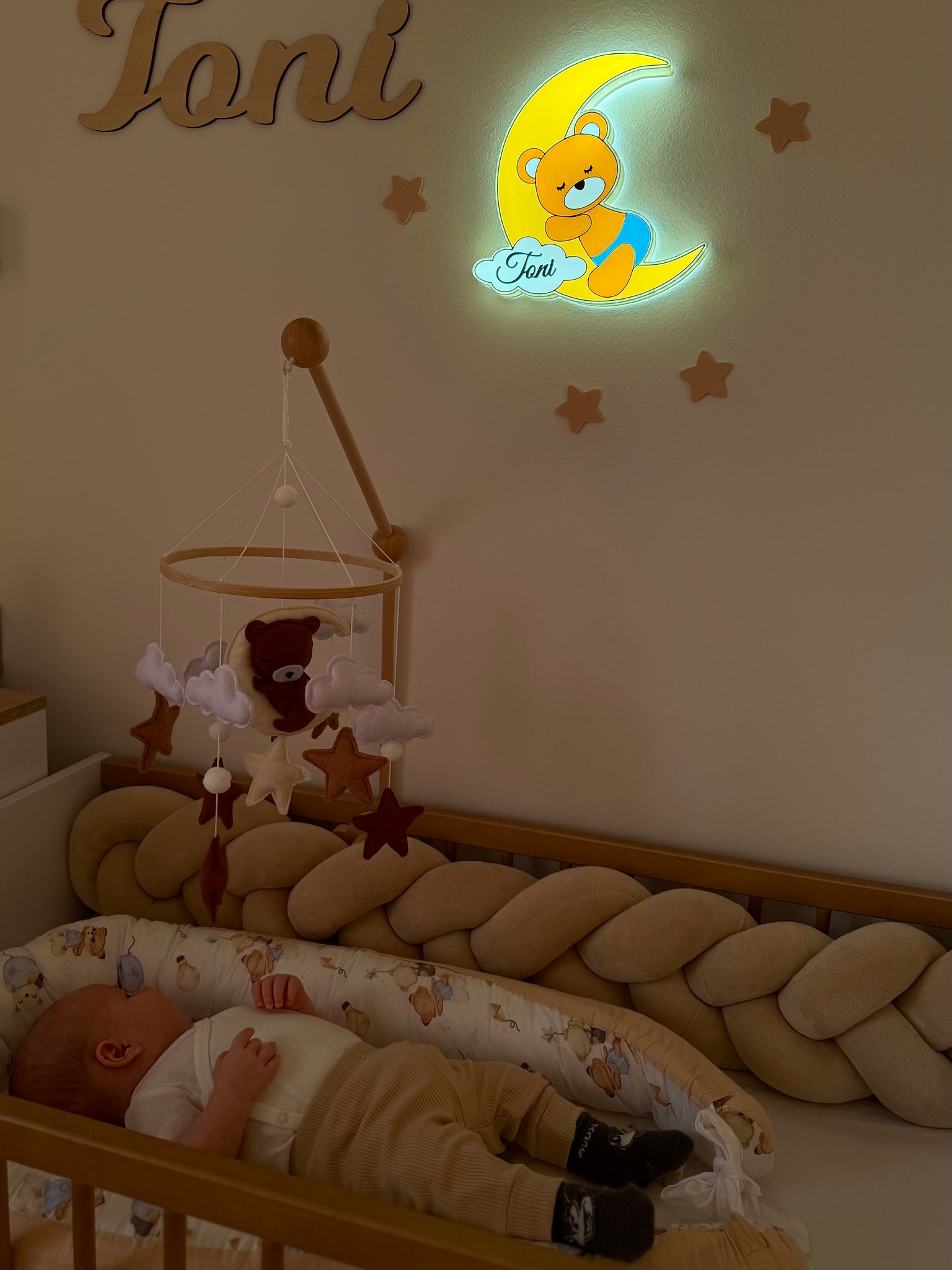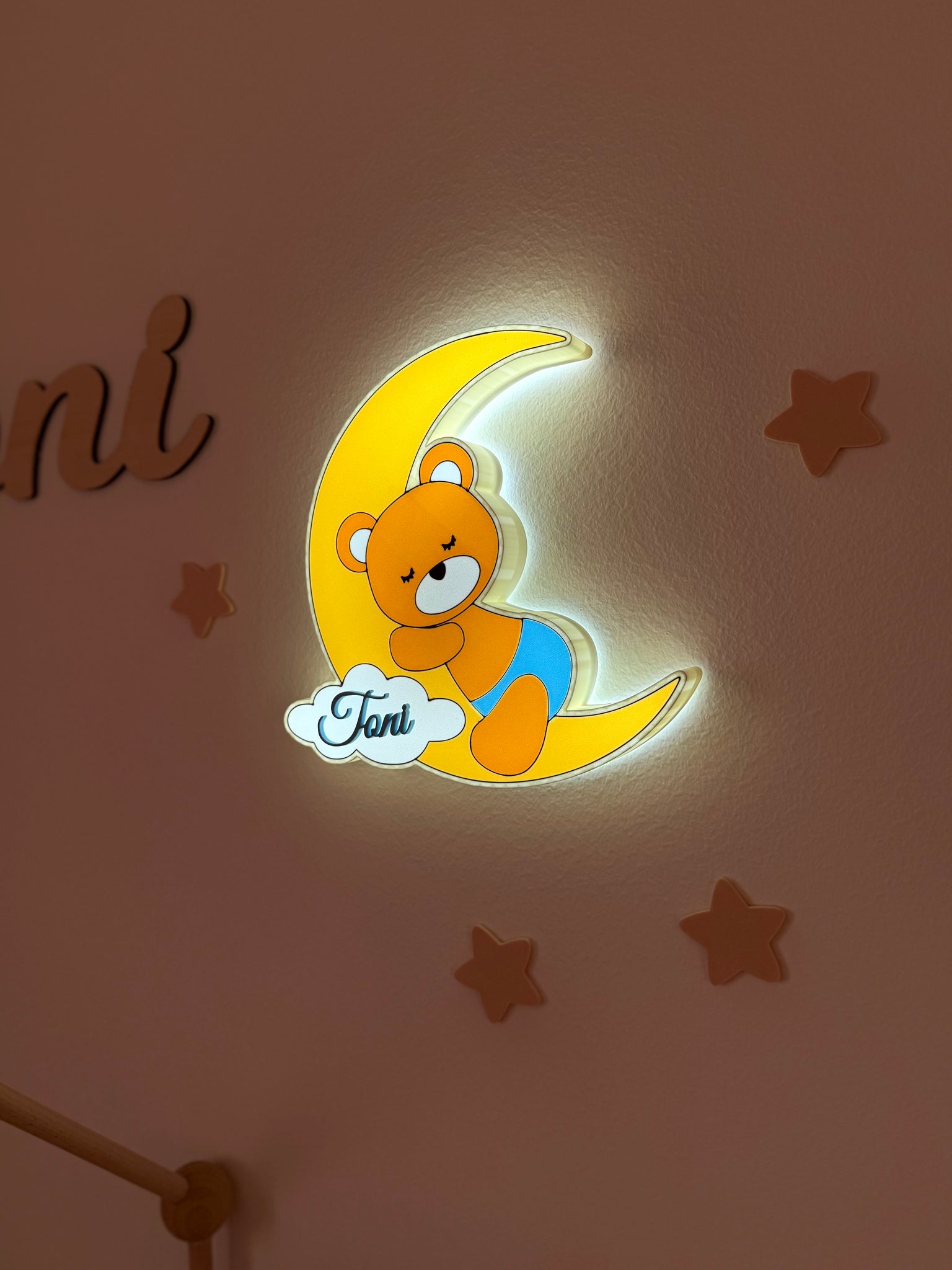 Neka svaki san započne uz toplu svjetlost medvjedića na polumjesecu.